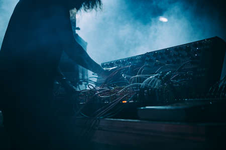 Making music using modular synthesizers. Electronic music and professional music equipment concept.