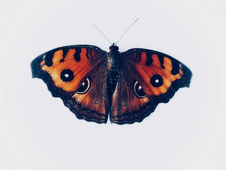 Moscow, Russia - March 12, 2019: Collection of dried natural insects in the Apothecary garden. Set of pin insect in biology museum. Zoology background