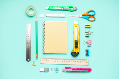 Stationery (accessories or tool) for education in school or classroom, space for your content - for background or texture.