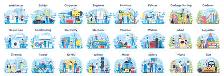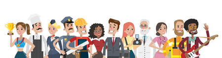 illustration of people in different professions. Professionals and workers.