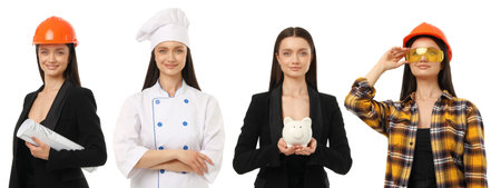 Set, Woman showcases outfits for various careers, PNG