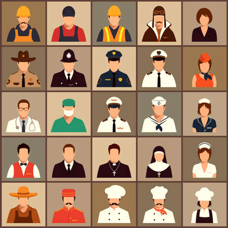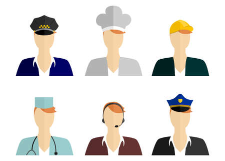 Isolated professions avatar icons on white background.