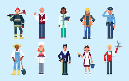 People of different professions on a blue background. Flat vector illustration.