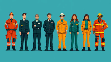 Diverse Group of First Responders Standing in a Row