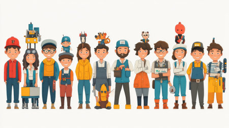 Cartoon characters in different professional outfits