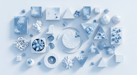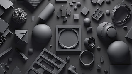 This image showcases an artistic collection of geometric shapes and textures arranged in a minimalist style, ideal for various design or art projects.