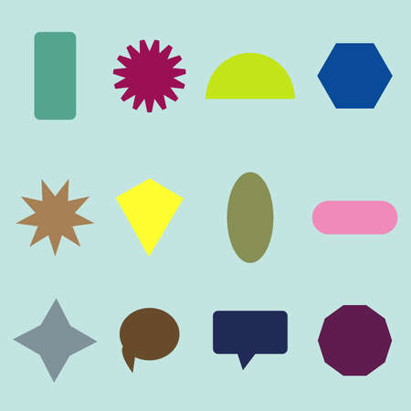 A collection of colorful geometric shapes and stars arranged on a white surface. Clear details and vibrant colors enhance visual appeal.
