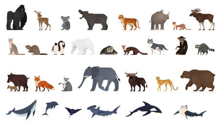 Animals and animals icons set. Vector illustration in cartoon style.