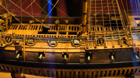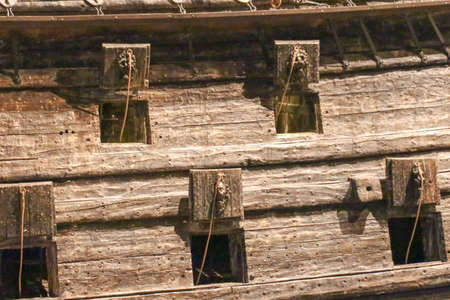 Stockholm, Sweden - December 30 2018: close up view of gun port of Vasa warship at Vasa Museum on December 30 2018 in Stockholm Sweden.