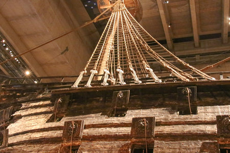 Stockholm, Sweden - December 30 2018: the view of Vasa shrouds at Vasa Museum on December 30 2018 in Stockholm Sweden.