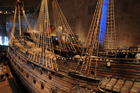 Stockholm, Sweden - June 6, 2015: The Vasa Museum in Stockholm, displays the Vasa ship, fully recovered 17th century viking warship, on June 6, 2015.