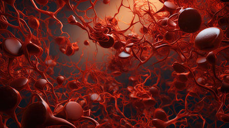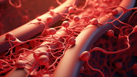 Blood vessels. Capillary, Circulatory system. Veins and arteries. Abstraction. Generative AI.