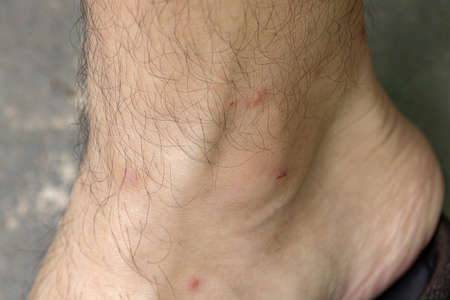 a lot of mosquito bites on mens legs. allergy from a bite on the skin