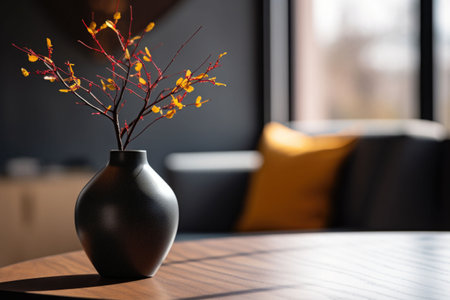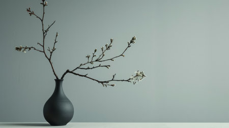 the branch and vase to create a space effect that adds depth and focus to the scene generative ai
