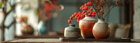 Collection of artisan pottery and vases, showcasing various shapes, colors, and textures. Perfect for arts, crafts, and handmade product themes.