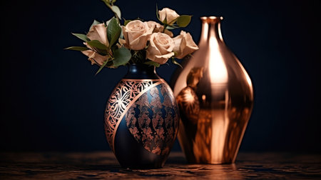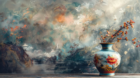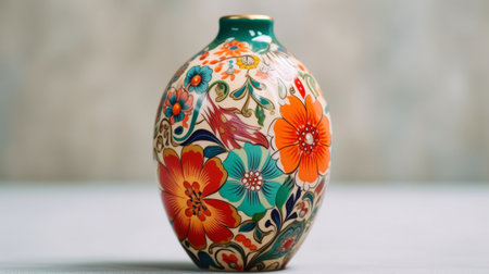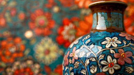 Hand painted porcelain vase with blooms pattern. Generative AI