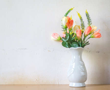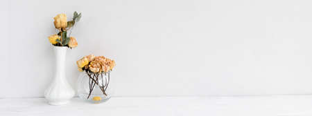 Fashionable stock background - flowers in a vase on a white background. Women's wedding or greeting background with copy space.