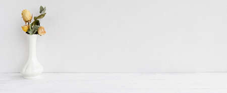 Dried flowers in the vase for decoration with empty wall in vintage minimalist style