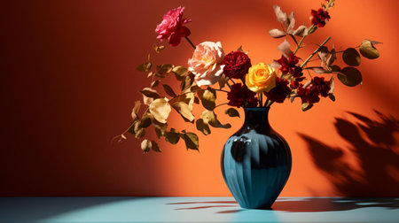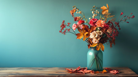 vase with an arrangement of flowers and autumn generative ai