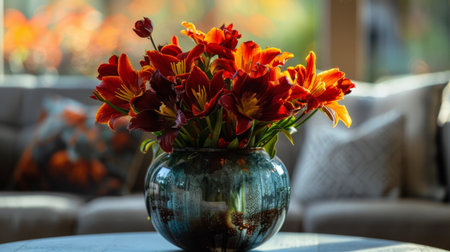 Vibrant fire flowers arranged in a decorative vase, adding a touch of warmth and elegance to any room