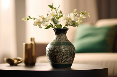 background with a minimalist floral arrangement, adding a touch of nature to the scene. Generative AI