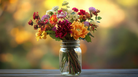 A beautiful arrangement of organic flowers in a mason jar, adding a touch of nature to home decor.