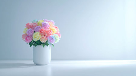 A stunning bouquet of pastel roses arranged in a sleek white vase, bringing an elegant touch to any space. Perfect for events, decor, or gifting, this image embodies beauty and freshness.