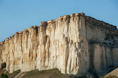 View of White rock or Aq Qaya on a Sunny summer day. Crimea. White limestone with a vertical cliff.