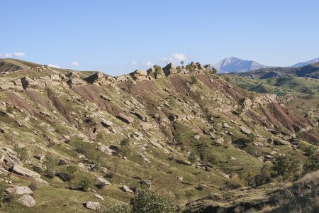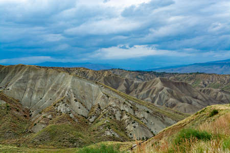 Beautiful textures and hills in VAshlovani national park. Travel destination in Georgia. Caucasus exploration.