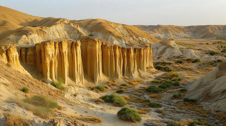 Incredible landscape at the Travertino waterfall and Rambla de Otero in the Tabernas desert, AlmerÃa province, Andalusia