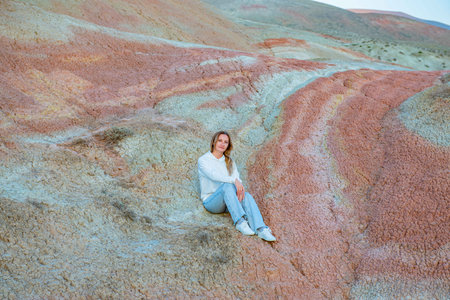 View of the red mountains and hills, the Martian landscape of Kyzyl-Chin. Travel to the national Park in the Altai mountains.
