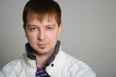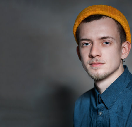 portrait of a young man. The man looks at the camera