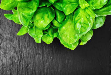 Basil. Fresh green leaves of organic basil close-up. Healthy eating.