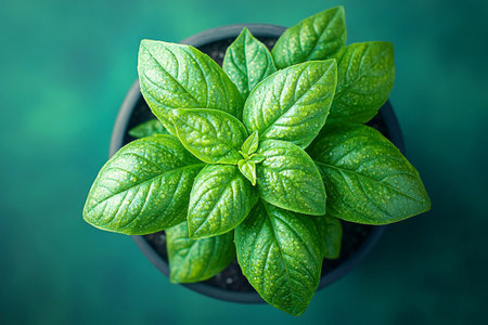 Generated AI Image of Fresh Fertile Organic Basil Leaves Pattern