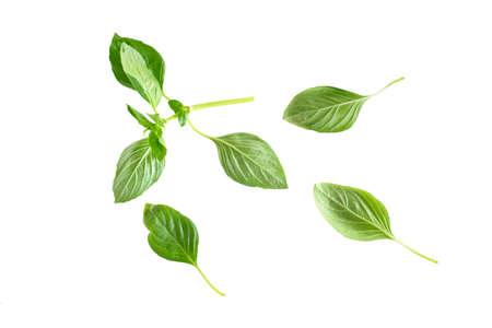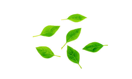 Basil leaves isolated on white background. Green ocimum basilicum Linn leaf.