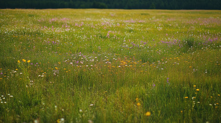 Scenic landscape with vibrant wildflowers in a sunny field, showcasing the beauty of nature and tranquility, ideal for spring and summer themes