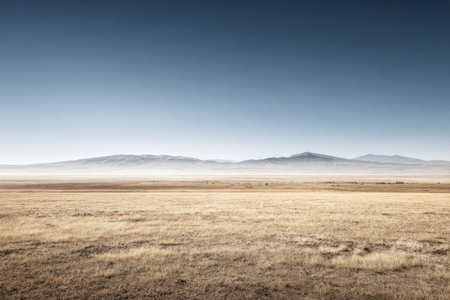 Explore the beauty of vast golden plains showcasing gentle rolling mountains under a clear blue sky, offering a perfect escape into nature and tranquility.