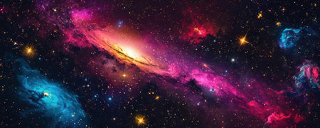 A breathtaking view of a vast cosmic galaxy with swirling colors and illuminating stars, showcasing the beauty and mystery of deep space.