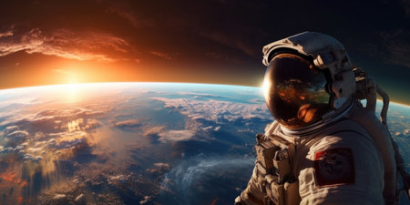 space tourist, enjoying view of the earth from outer space, with planet in its full glory visible, created with generative ai