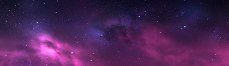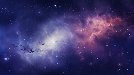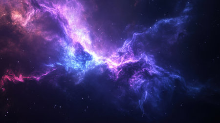 An awe-inspiring cosmic scene showcasing a vibrant nebula with swirling purple and blue clouds, illuminated stars, and the captivating beauty of outer space.