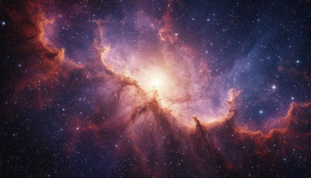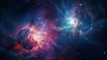 Explore the beauty of a vibrant nebula in deep space, showcasing swirling colors and bright stars, perfect for creative projects and artistic inspirations.