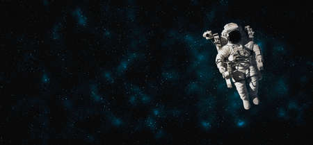 Astronaut in space background with copyspace. Milky way galaxy background.