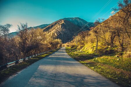 scenic road trip through the mountains, with winding roads and scenic views, created with generative ai