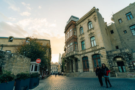 BAKU, AZERBAIJAN - Dec 15, 2025 Historical street of Icherisheher, the Old City of Baku, Azerbaijan. High quality photo
