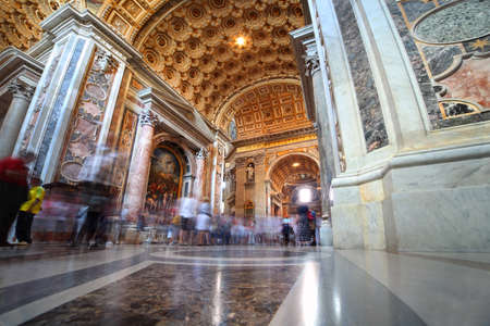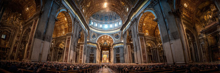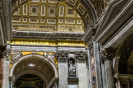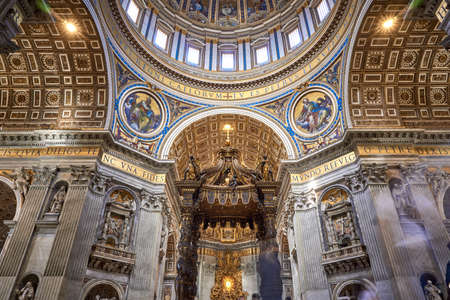 Indoor view of Basilica di San Pietro in Rome, Italy, beautiful gold finishing