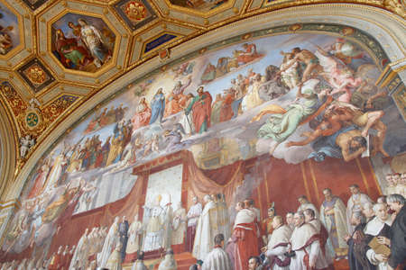 Wall painting as The Discussion of dogma in St. Peter’s Basilica at Room of the Immaculate Conception