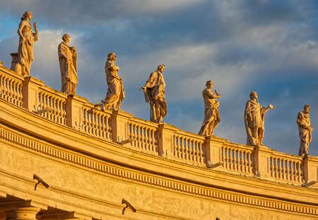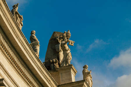 Vatican City Italy October 18, 2019 View of marble statues located at the St Peter's Basilica square in the Vatican City in the afternoon