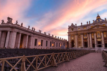 Doric columns on St. Peter’s Square in the evening. Vatican City,