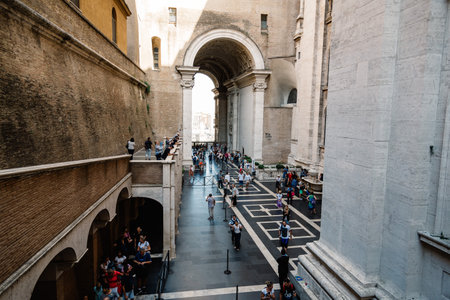 Rome, Italy - August 19, 2016: Interior courtyard in Vatican Museums. The Vatican Museums are Christian and art museums located within the city boundaries of the Vatican City