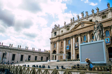 VATICAN CITY, ITALY- APRIL 08: Saint Peters Square and Basilica in Vatican City on April 08, 2019